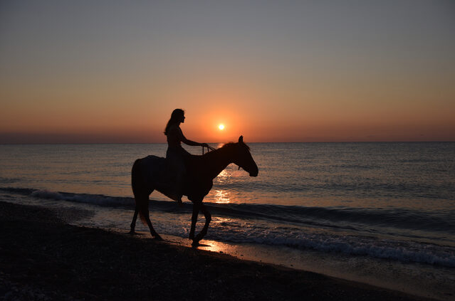 Yazın Yeni Trendi At Üstünde Gün Doğumu , Türkiye de başlayan akım yeni bir görsel şölen başlattı. Antalya’da bir at çiftliği sahibi girişimci zekasıyla harika bir işe imza attı. Tatil için Antalya Kemer ilçesini seçen tatilciler yazın yeni trendi: at üstünde gün doğumu izleyerek, denize girmeye başladı. Aynı zamanda gün doğarken çekilen fotoğraflar da tatilciler için anılar ölümsüzleştirildi. 3 saatlik gün doğumunda at turu için tatilciler 45 dolar ödeme yapıyor.