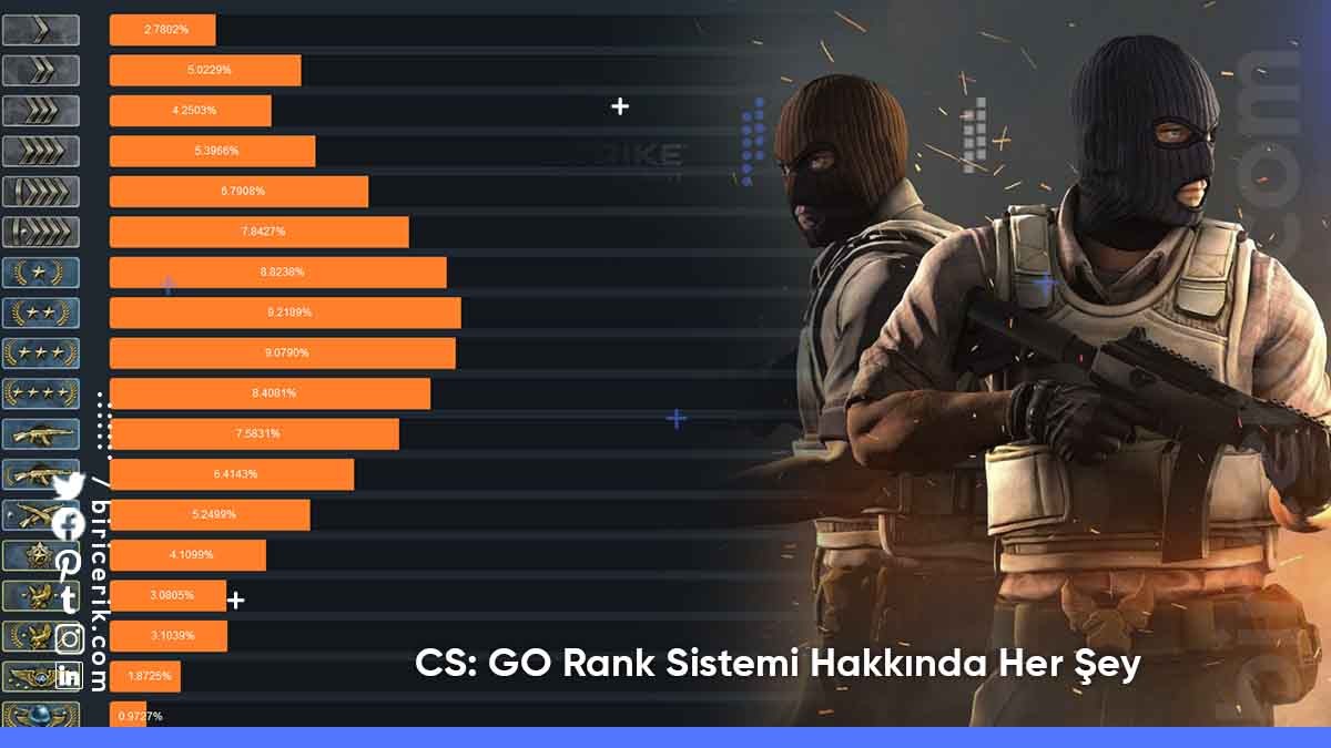 Rank sisteminde, ilgiyle oynanmakta olan diğer online oyunlarda level atlamak, tur geçmek gibi terimlerin ifade ettiği anlamları karşılamak için kullanılan kelime rank olmaktadır. Counter Strike oyununun yapımcısı tarafından yeni sürüm olarak piyasaya sürülen son Oyun CS: GO yani Counter Strike Global Offensive oyunundaki rütbe ya da lig olarak tabir edilen sistem şöyle işlemektedir;