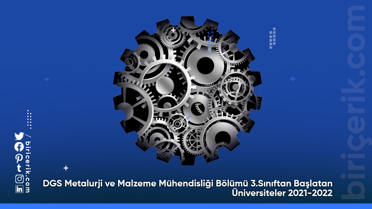 DGS Metalurji ve Malzeme Mühendisliği Bölümü 3.Sınıftan Başlatan Üniversiteler 2021-2022 yıllarının en çok merak edilen bölümleri arasında yer almaktadır.