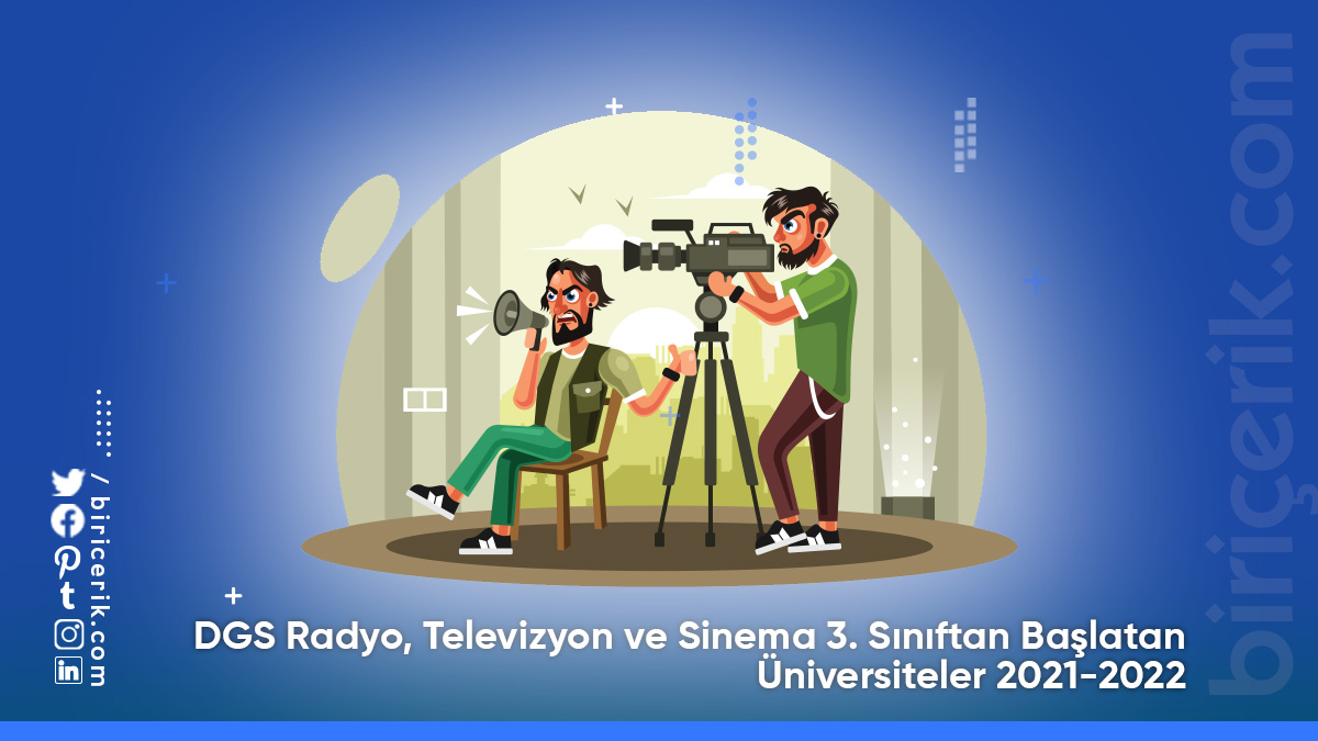 DGS Radyo, Televizyon ve Sinema 3. Sınıftan Başlatan Üniversiteler 2021-2022, Dikey Geçiş Sınavına giren kişiler mezun oldukları 2 yıllık eğitim programlarını 4 yıla tamamlamak için tercih listeyi yapmaya hazırlanmaktadır. DGS sonucuna göre tercih yapıp Radyo, Televizyon ve Sinema bölümünü okumak isteyen kişiler geçiş sonrası kaçıncı sınıftan başlayacaklarını merak etmektedir? Sınav puanının yeterli olması durumunda üniversitelerin lisans bölümüne yerleştirilecek olan öğrenciler Hazırlık zorunluluğu bulunan okullarda hazırlık sınıfını okumak zorundadır. Meslek yüksek Okullarında aldıkları derslerin çakışma durumuna göre tekrar aynı dersleri alma zorunlulukları yoktur.
