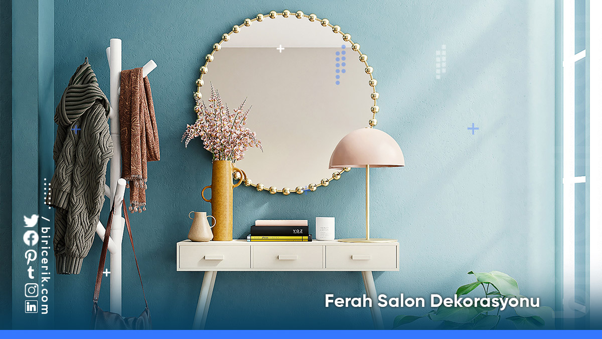 Ayna Kullanımı: Aynalar, adeta bir sihir gibi oldukları alanı geniş gösterir. Bunun nedeni güneş ışıklarını yansıtmasıdır. Salonlarda doğru olarak konumlandıracağınız bir ayna kullanarak ferah bir salon için bütünleyici olacaktır.