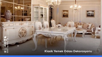Klasik Yemek Odası Dekorasyonu, evlere ilham veren fikirler arasında gelir. İşlemeli ve kabartmalı mobilya tasarımlarının1
