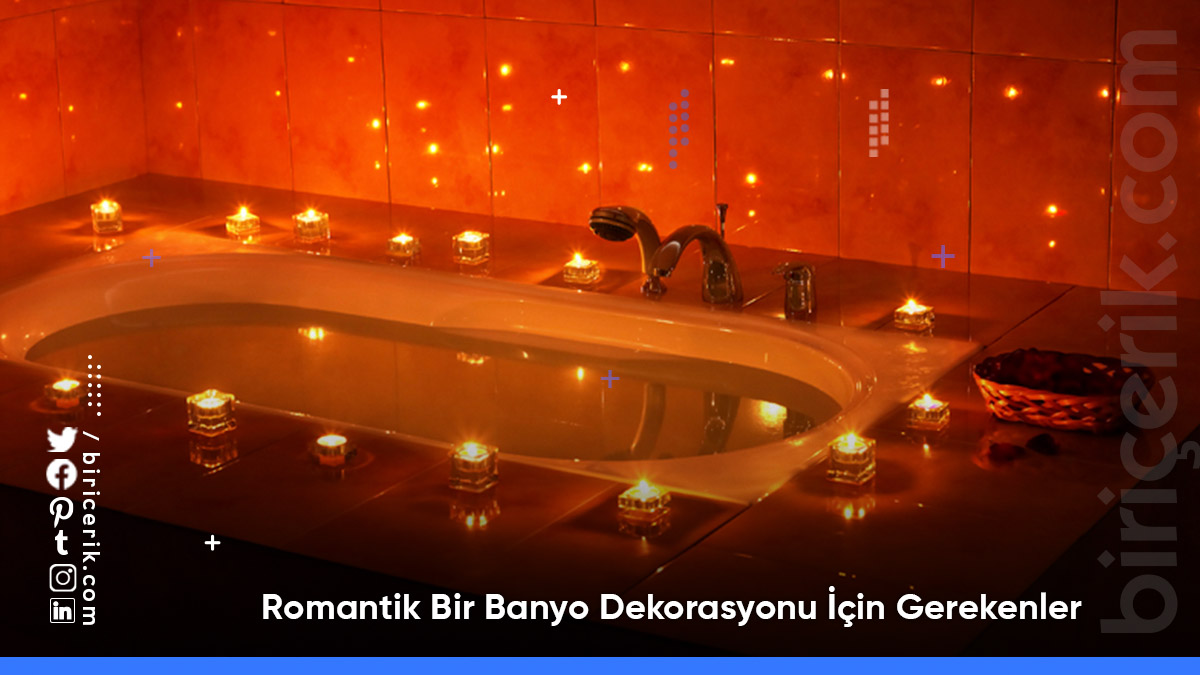 Romantik Bir Banyo Dekorasyonu İçin Gerekenler kişinin tamamen zevkine göre dizayn edilmiş tasarımlardır. Karşı cinse duyulan aşk ile şekillenen bu tür dekorasyon biçimlerinin içine kuru güller, tütsüler, mumlar vb. gibi aksesuarlar girmektedir.