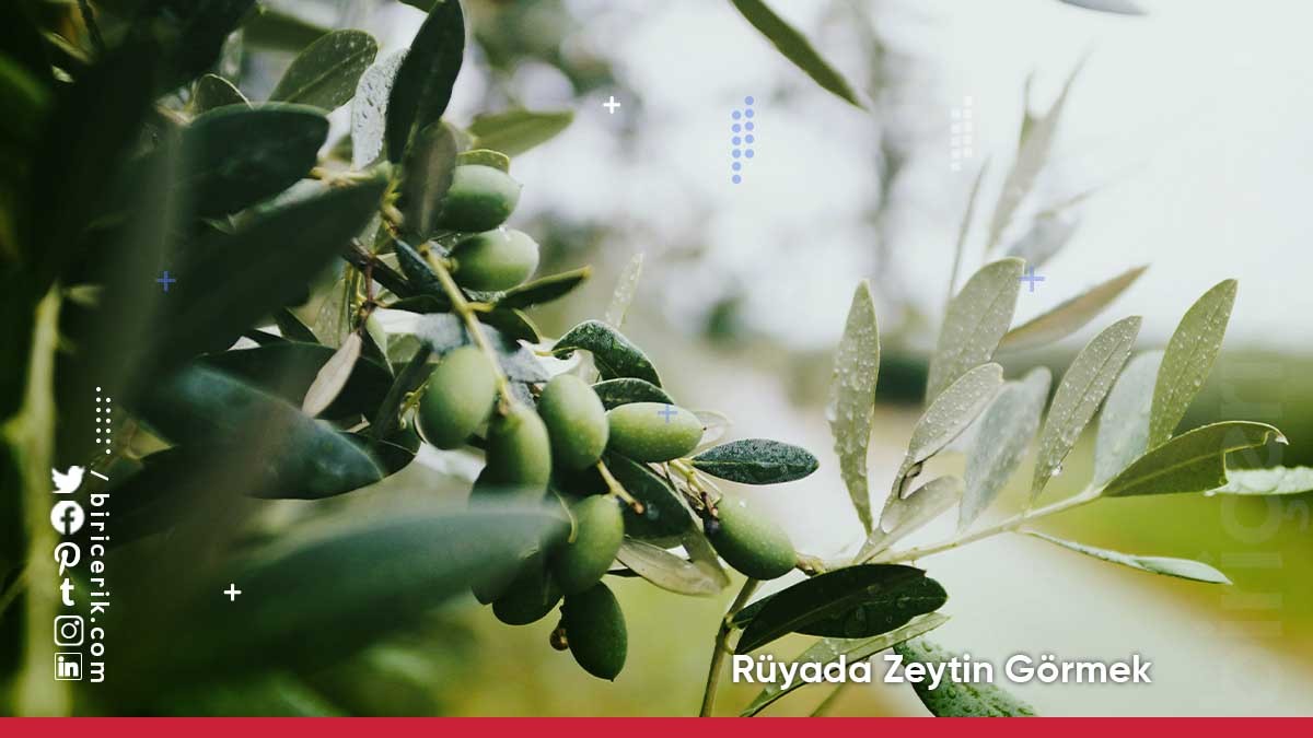 Rüyada zeytin hayra yorulan bir durumdur. Rüyada zeytin ağacı görmek de bundan dolayı iyiye işaret eder. İş yaşamındaki başarılar, kariyer artışı zeytinle bağdaştırılır. Zeytin ağacı kişinin bol kazanç elde edeceğine ve kariyerinde bir artış yaşanacağına delalet ederken ailesi ile birlikte refah içerisinde olacağının da ifadesi olarak kabul edilir.