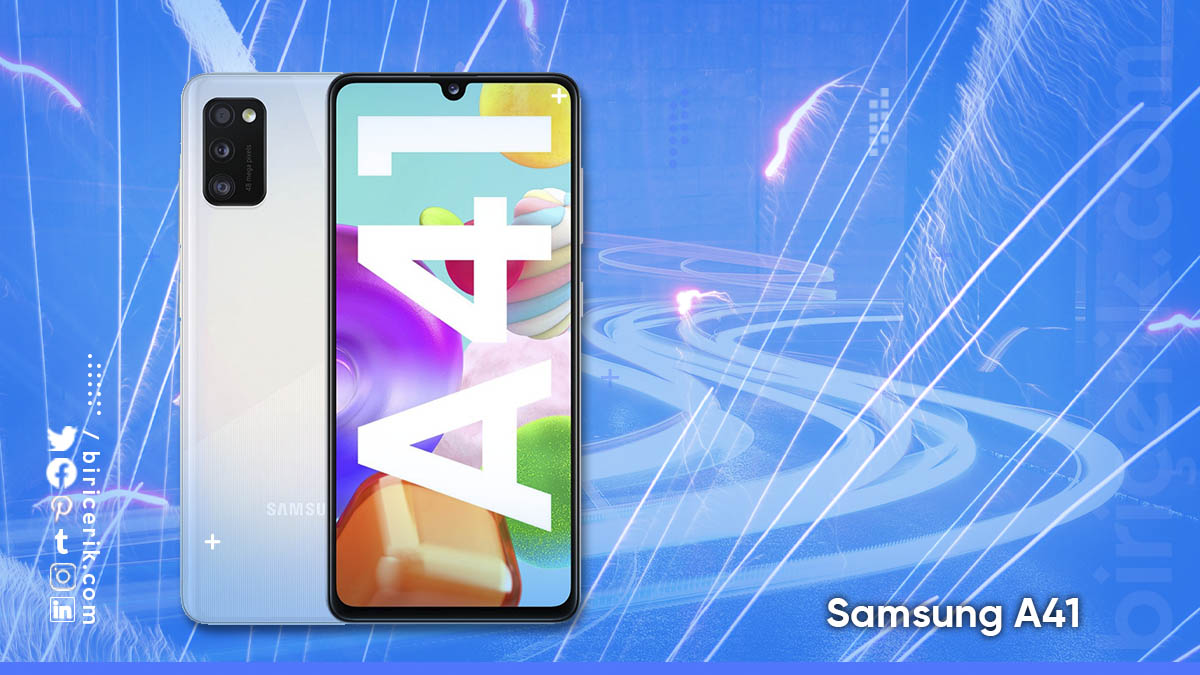 A serisi akıllı telefon ailesinin en yeni üyeleri, Galaxy A51 akıllı telefon markası ile aynı kompakt, ince tasarıma ve gelişmiş özelliklere sahip olan bir akıllı telefon markasıdır. Samsung Galaxy A41 akıllı telefon modeli, Full HD + çözünürlüğe ve 20: 9 en boy oranına sahip olan bir telefondur. 6,1 inç Süper AMOLED sistemi ekran boyutuna sahip olmaktadır. 4 GB RAM özelliği ve 64 GB depolama kapasitesi sunan bu cihaz, üreticinin bilmediği 8 çekirdekli bir işlemci sistemine sahip olmaktadır.