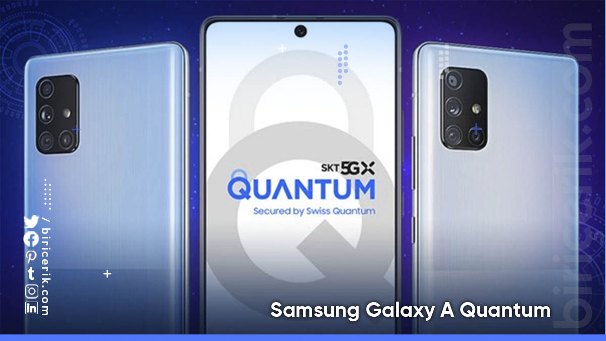 Samsung Galaxy A Quantum. Güney Kore merkezli telefon üreticisi olan Samsung, dünyada bir ilki başardı. Dünyanın ilk Kuantum Rastgele Sayı Üreticisi (QRNG) çipine sahip olan akıllı cihazını tanıtan şirket, telefonun 5G destekli olduğunu da duyurdu. Farkını ortaya koyan bu özel ve çipli telefonda kullanıcıların belirlediği hizmetleri güvenli bir şekilde kullanılmasına imkân tanıyan ve asla tahmin edilemeyen rastgele sayılar üretilmektedir. SK Telecom, ID Quantique ve Samsung’un iş birliği sayesinde üretimi gerçekleştirilen bu cihaz üstün güvenlik duvarı ve yeteneğiyle dikkatleri üzerine çekmeyi başarmıştır. Kişisel bilgileri güvende tutmak amacıyla geliştirilen QRNG çipi sayesinde birçok farklı bölümde güvenli iletişim sağlanması amaçlanmıştır. 2020 yılının mayıs ayında duyurulan cihaz 22 Mayıs tarihinde ilk defa Güney Kore’de piyasaya sunulmuştur.