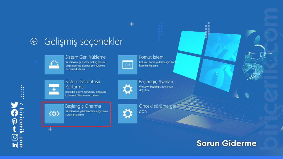 Sorun giderme Windows 10 işletim sisteminde;
