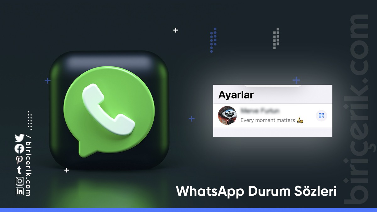 WhatsApp durum sözleri günümüzde birçok kişinin paylaştığı özlü sözler arasında yer almaktadır. Farklı durumları birkaç kelimelik cümlelerle anlatan bu sözler kişilerin içinde bulundukları durumları en iyi yansıtan sözler içerisindedir. WhatsApp durum sözleri kısa da olsa kişilerin hayatlarını en iyi şekilde yansıtan bildikleri cümlelerdir. Bu sözler bazen sosyal hayatı anlatan bazen aşkı bazen de öfkeyi yansıtan sözler olmaktadır. WhatsApp durum sözleri diniolabildiği gibi eğitim, sanat, sağlık gibi konularda da olabilmektedir. Bununla birlikte en çok tercih edilen WhatsApp durum sözleri kapakolabilecek nitelikte sözlerdir. Tüm bu sözleri WhatsApp profilinize paylaşabileceğiniz gibi aynı zamanda hikâye bölümünüzde de çeşitli yazı karakterleri ile yazarak da paylaşabilirsiniz. Günümüzde en çok paylaşılan WhatsApp sözleri şunlardır: